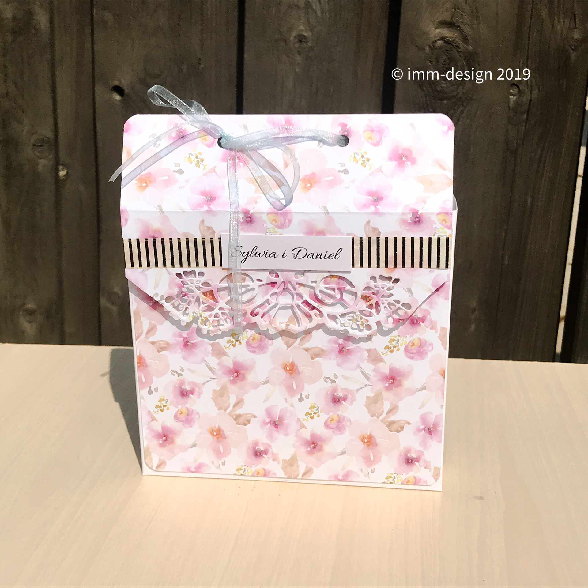 Wedding wishes enclosed in an elegant paper bag. I think it is a very nice way of packing the card.